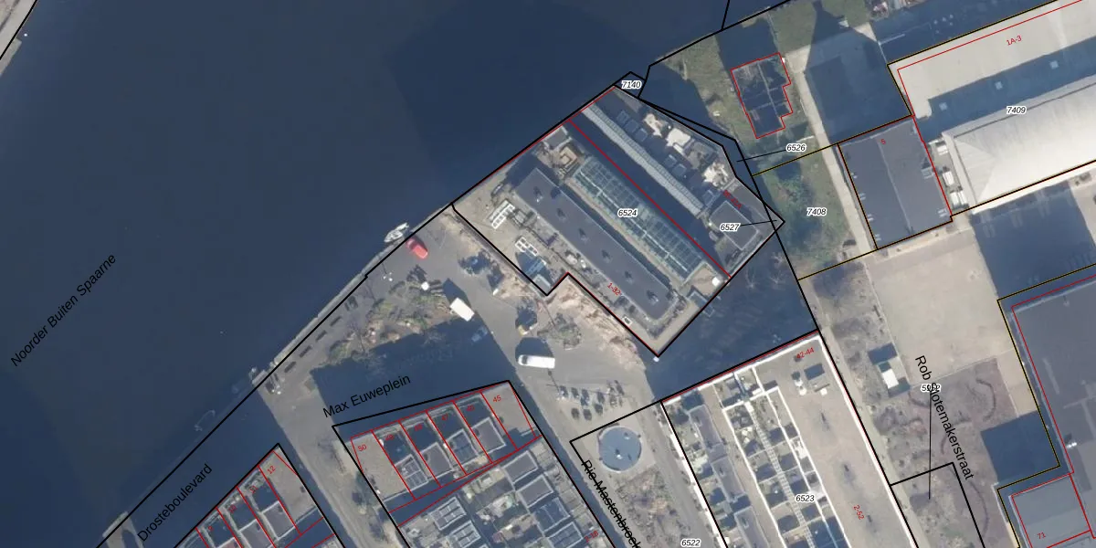 Max Euweplein 1 is gelegen op kadastraal perceel HLM01E6524. Deze kadastrale aanduiding is uniek en wordt gebruikt door het Kadaster om eigendomsrechten en andere zakelijke rechten vast te leggen. Het perceel maakt onderdeel uit van de kadastrale gemeente Haarlem.