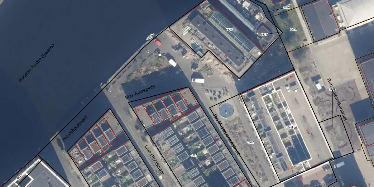 Max Euweplein 45 is gelegen op kadastraal perceel HLM01E6521. Deze kadastrale aanduiding is uniek en wordt gebruikt door het Kadaster om eigendomsrechten en andere zakelijke rechten vast te leggen. Het perceel maakt onderdeel uit van de kadastrale gemeente Haarlem.