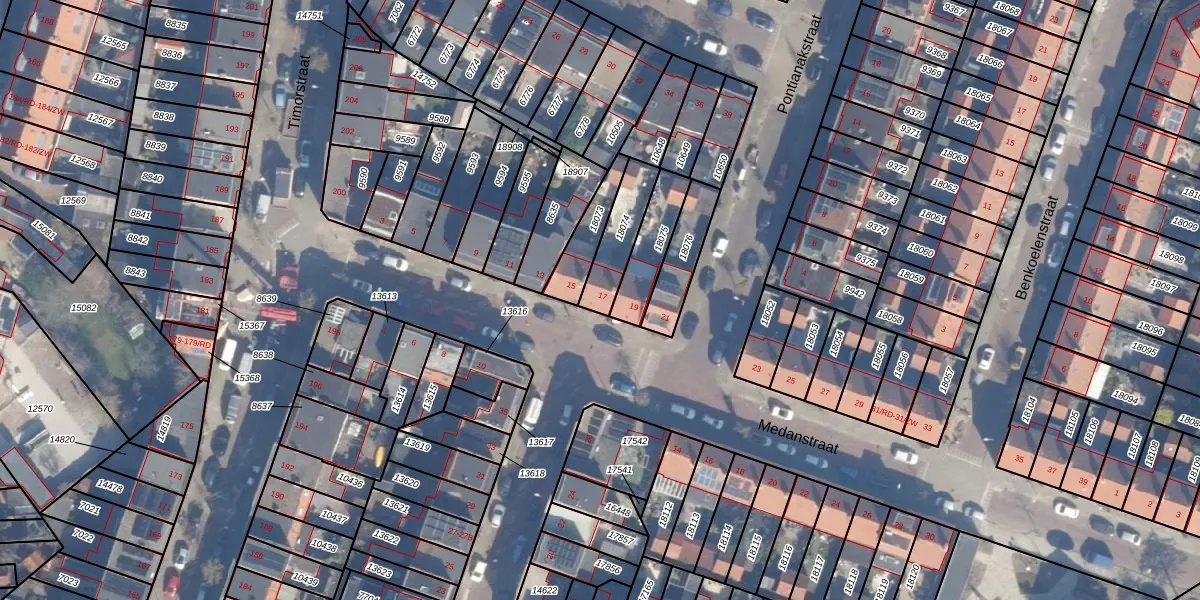 Het perceel waarop Medanstraat 17 staat heeft een oppervlakte van 141 m². Dit is een middelgroot perceel. De perceeloppervlakte wordt geregistreerd door het Kadaster. Gedetailleerde informatie over de maten van dit perceel kunt u vinden in het rapport Kadastrale kaart met maatvoering van Medanstraat 17.