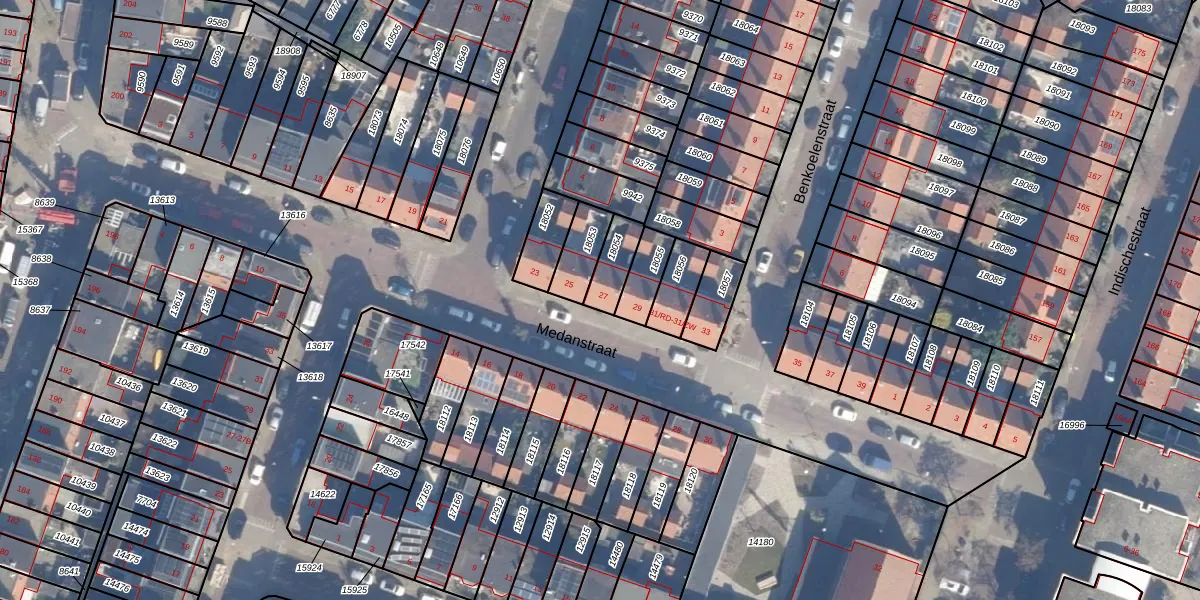 Het perceel waarop Medanstraat 27 staat heeft een oppervlakte van 88 m². Dit is een klein perceel. De perceeloppervlakte wordt geregistreerd door het Kadaster. Gedetailleerde informatie over de maten van dit perceel kunt u vinden in het rapport Kadastrale kaart met maatvoering van Medanstraat 27.