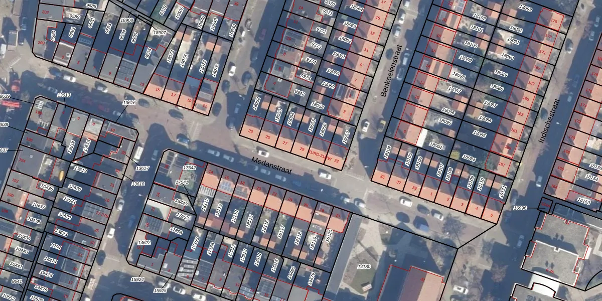 Het perceel waarop Medanstraat 29 staat heeft een oppervlakte van 87 m². Dit is een klein perceel. De perceeloppervlakte wordt geregistreerd door het Kadaster. Gedetailleerde informatie over de maten van dit perceel kunt u vinden in het rapport Kadastrale kaart met maatvoering van Medanstraat 29.