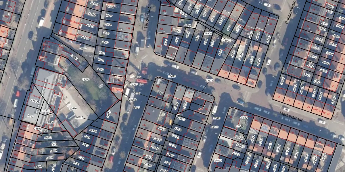 Gebruik de zoekbalk of klik op een perceel voor informatie over de adressen binnen dit perceel.
