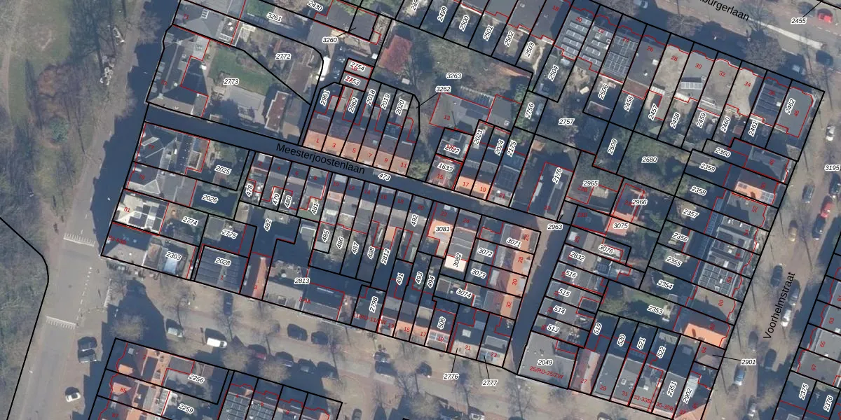 Gebruik de zoekbalk of klik op een perceel voor informatie over de adressen binnen dit perceel.