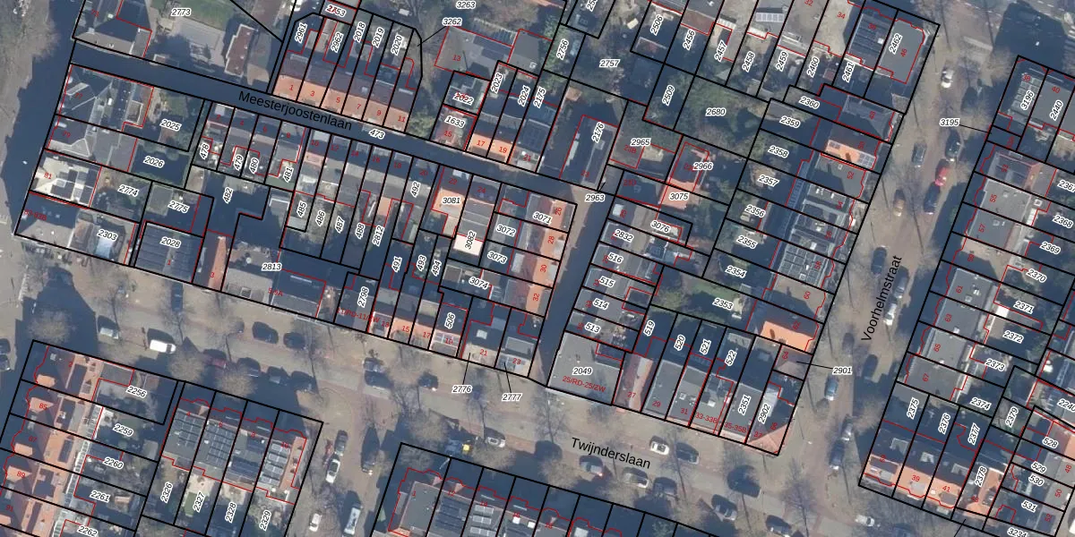 Gebruik de zoekbalk of klik op een perceel voor informatie over de adressen binnen dit perceel.