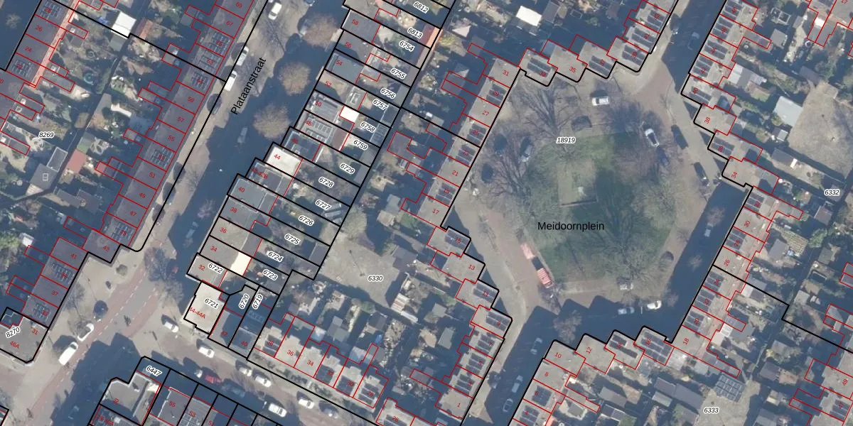Het perceel waarop Meidoornplein 17 staat heeft een oppervlakte van 2692 m². Dit is een zeer groot perceel. De perceeloppervlakte wordt geregistreerd door het Kadaster. Gedetailleerde informatie over de maten van dit perceel kunt u vinden in het rapport Kadastrale kaart met maatvoering van Meidoornplein 17.
