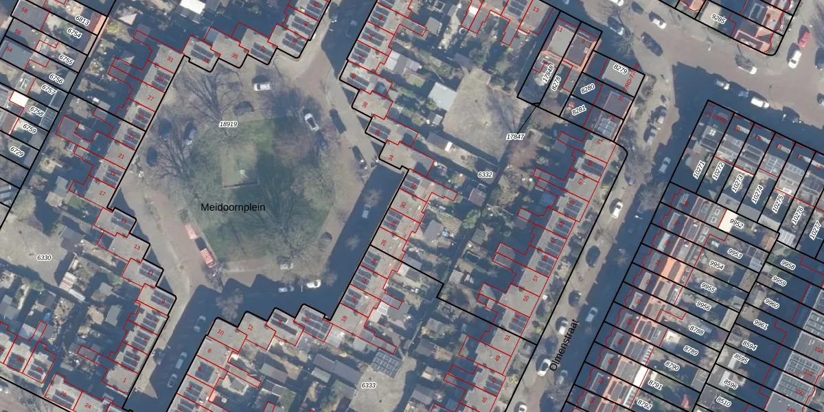 Het perceel waarop Meidoornplein 30 staat heeft een oppervlakte van 3906 m². Dit is een zeer groot perceel. De perceeloppervlakte wordt geregistreerd door het Kadaster. Gedetailleerde informatie over de maten van dit perceel kunt u vinden in het rapport Kadastrale kaart met maatvoering van Meidoornplein 30.