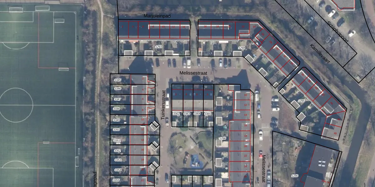 Het perceel waarop Melissestraat 4 staat heeft een oppervlakte van 126 m². Dit is een middelgroot perceel. De perceeloppervlakte wordt geregistreerd door het Kadaster. Gedetailleerde informatie over de maten van dit perceel kunt u vinden in het rapport Kadastrale kaart met maatvoering van Melissestraat 4.