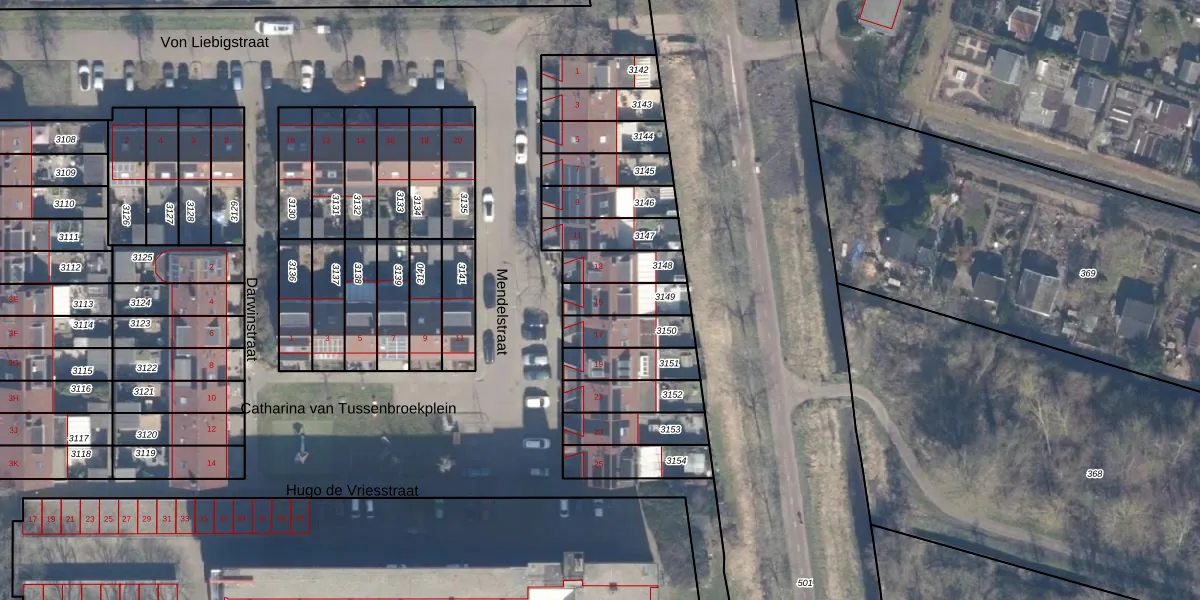 Het perceel waarop Mendelstraat 15 staat heeft een oppervlakte van 115 m². Dit is een middelgroot perceel. De perceeloppervlakte wordt geregistreerd door het Kadaster. Gedetailleerde informatie over de maten van dit perceel kunt u vinden in het rapport Kadastrale kaart met maatvoering van Mendelstraat 15.