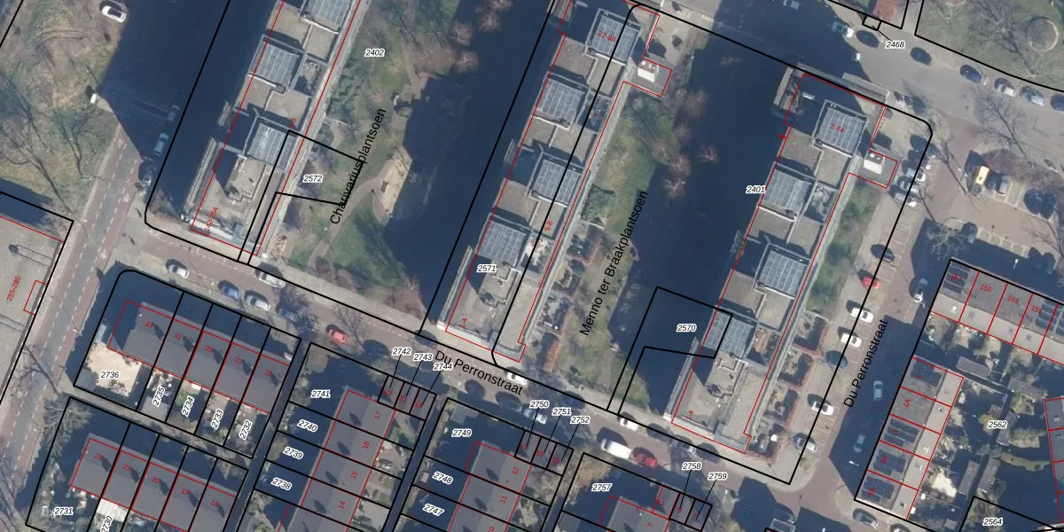 Het perceel waarop Menno ter Braakplantsoen 6 staat heeft een oppervlakte van 4265 m². Dit is een zeer groot perceel. De perceeloppervlakte wordt geregistreerd door het Kadaster. Gedetailleerde informatie over de maten van dit perceel kunt u vinden in het rapport Kadastrale kaart met maatvoering van Menno ter Braakplantsoen 6.
