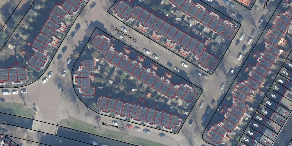 Het perceel waarop Merkmanstraat 14 staat heeft een oppervlakte van 3655 m². Dit is een zeer groot perceel. De perceeloppervlakte wordt geregistreerd door het Kadaster. Gedetailleerde informatie over de maten van dit perceel kunt u vinden in het rapport Kadastrale kaart met maatvoering van Merkmanstraat 14.