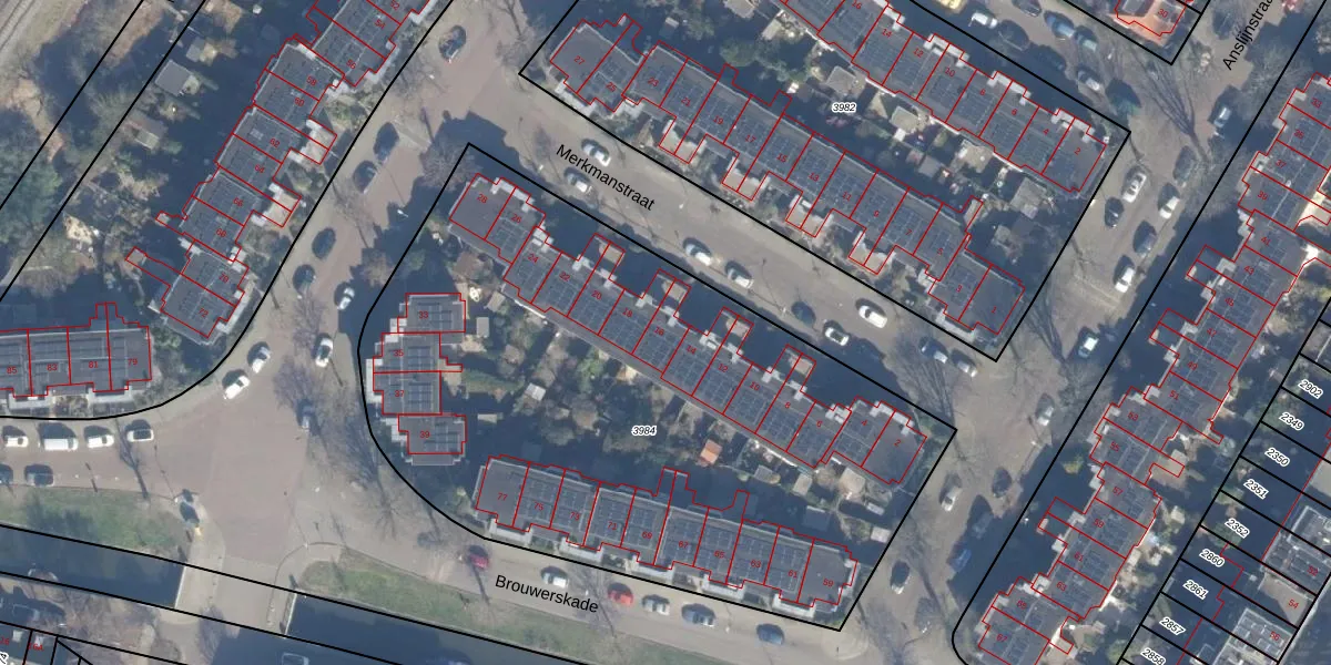 Het perceel waarop Merkmanstraat 16 staat heeft een oppervlakte van 3655 m². Dit is een zeer groot perceel. De perceeloppervlakte wordt geregistreerd door het Kadaster. Gedetailleerde informatie over de maten van dit perceel kunt u vinden in het rapport Kadastrale kaart met maatvoering van Merkmanstraat 16.
