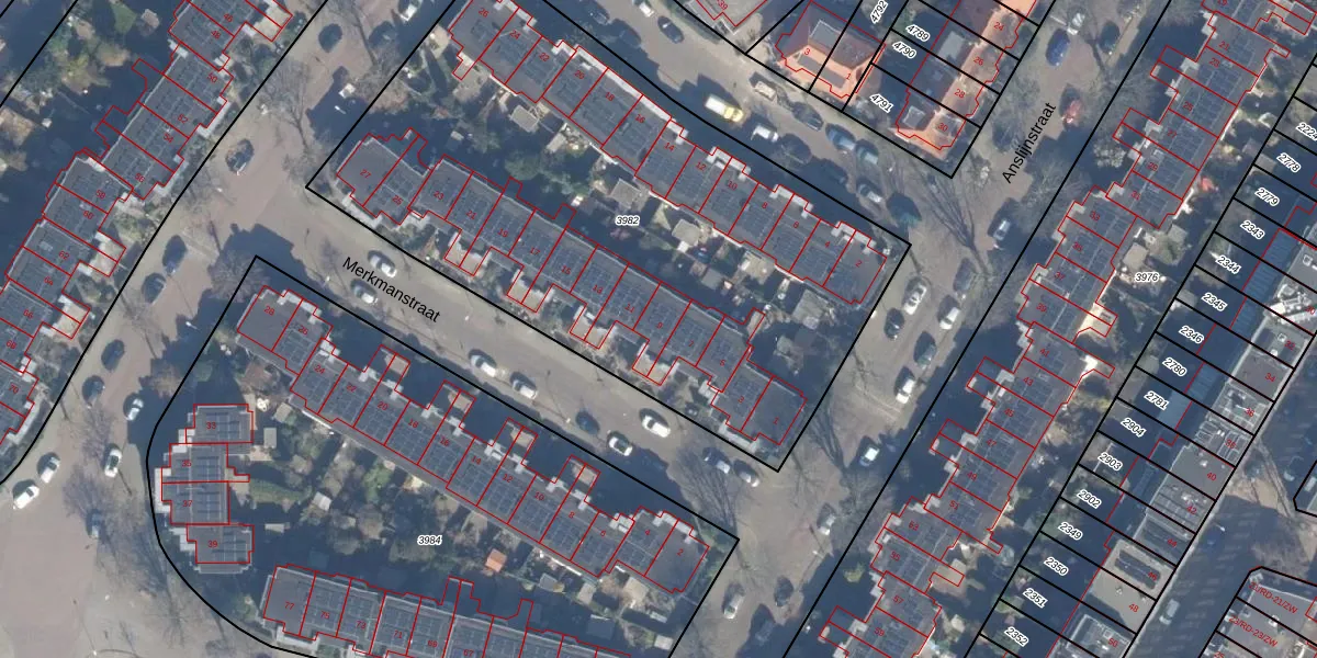 Het perceel waarop Merkmanstraat 9 staat heeft een oppervlakte van 3345 m². Dit is een zeer groot perceel. De perceeloppervlakte wordt geregistreerd door het Kadaster. Gedetailleerde informatie over de maten van dit perceel kunt u vinden in het rapport Kadastrale kaart met maatvoering van Merkmanstraat 9.