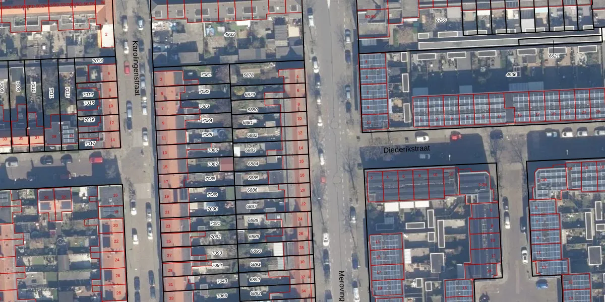 Het perceel waarop Merovingenstraat 14 staat heeft een oppervlakte van 118 m². Dit is een middelgroot perceel. De perceeloppervlakte wordt geregistreerd door het Kadaster. Gedetailleerde informatie over de maten van dit perceel kunt u vinden in het rapport Kadastrale kaart met maatvoering van Merovingenstraat 14.