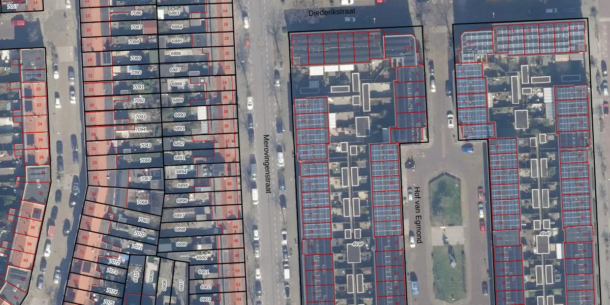 Het perceel waarop Merovingenstraat 19 staat heeft een oppervlakte van 5640 m². Dit is een zeer groot perceel. De perceeloppervlakte wordt geregistreerd door het Kadaster. Gedetailleerde informatie over de maten van dit perceel kunt u vinden in het rapport Kadastrale kaart met maatvoering van Merovingenstraat 19.