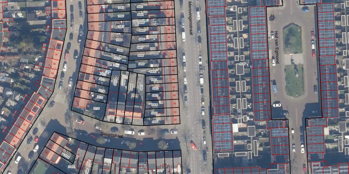 Het perceel waarop Merovingenstraat 52 staat heeft een oppervlakte van 90 m². Dit is een klein perceel. De perceeloppervlakte wordt geregistreerd door het Kadaster. Gedetailleerde informatie over de maten van dit perceel kunt u vinden in het rapport Kadastrale kaart met maatvoering van Merovingenstraat 52.