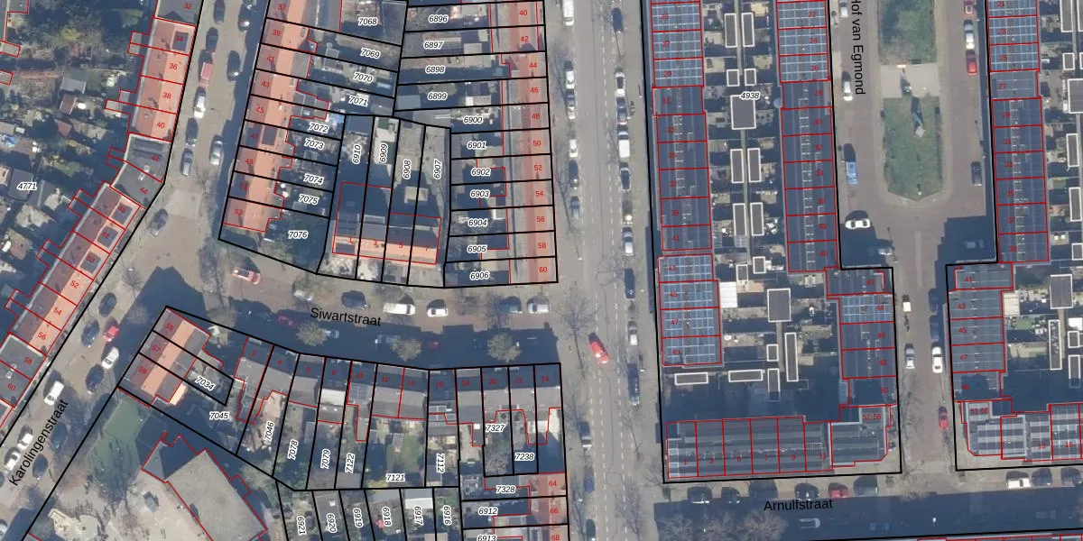 Het perceel waarop Merovingenstraat 60 staat heeft een oppervlakte van 100 m². Dit is een middelgroot perceel. De perceeloppervlakte wordt geregistreerd door het Kadaster. Gedetailleerde informatie over de maten van dit perceel kunt u vinden in het rapport Kadastrale kaart met maatvoering van Merovingenstraat 60.