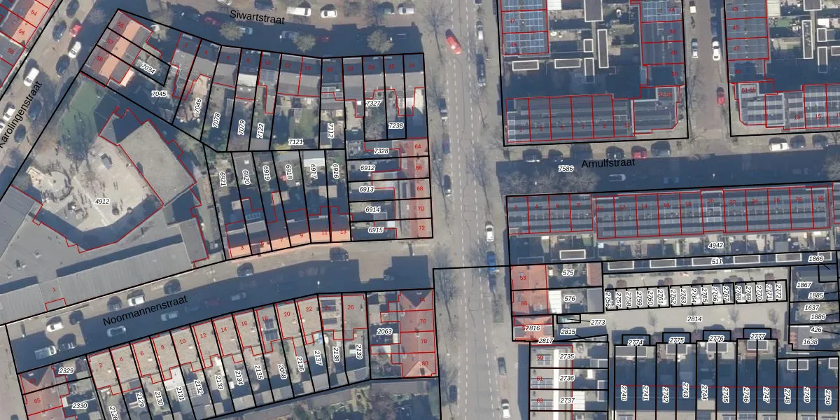 Het perceel waarop Merovingenstraat 70 staat heeft een oppervlakte van 95 m². Dit is een klein perceel. De perceeloppervlakte wordt geregistreerd door het Kadaster. Gedetailleerde informatie over de maten van dit perceel kunt u vinden in het rapport Kadastrale kaart met maatvoering van Merovingenstraat 70.
