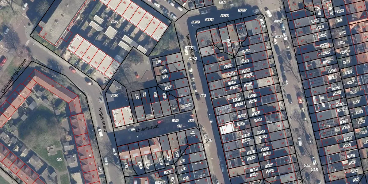 Gebruik de zoekbalk of klik op een perceel voor informatie over de adressen binnen dit perceel.