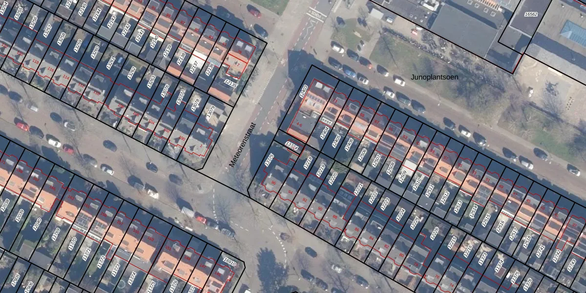 Het perceel waarop Meteorenstraat 2 staat heeft een oppervlakte van 41 m². Dit is een klein perceel. De perceeloppervlakte wordt geregistreerd door het Kadaster. Gedetailleerde informatie over de maten van dit perceel kunt u vinden in het rapport Kadastrale kaart met maatvoering van Meteorenstraat 2.