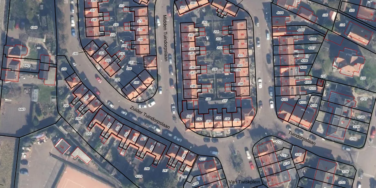 Gebruik de zoekbalk of klik op een perceel voor informatie over de adressen binnen dit perceel.