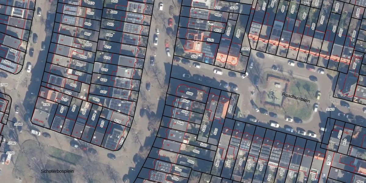 Middenweg 20-B is gelegen op kadastraal perceel STN01B5546. Deze kadastrale aanduiding is uniek en wordt gebruikt door het Kadaster om eigendomsrechten en andere zakelijke rechten vast te leggen. Het perceel maakt onderdeel uit van de kadastrale gemeente Schoten.