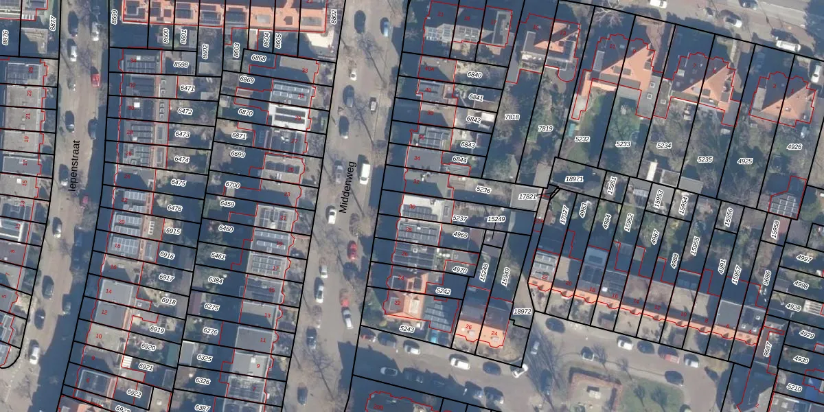 Het perceel waarop Middenweg 30 staat heeft een oppervlakte van 228 m². Dit is een middelgroot perceel. De perceeloppervlakte wordt geregistreerd door het Kadaster. Gedetailleerde informatie over de maten van dit perceel kunt u vinden in het rapport Kadastrale kaart met maatvoering van Middenweg 30.