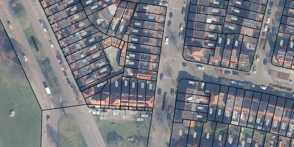 Het perceel waarop Middenweg 45 staat heeft een oppervlakte van 152 m². Dit is een middelgroot perceel. De perceeloppervlakte wordt geregistreerd door het Kadaster. Gedetailleerde informatie over de maten van dit perceel kunt u vinden in het rapport Kadastrale kaart met maatvoering van Middenweg 45.