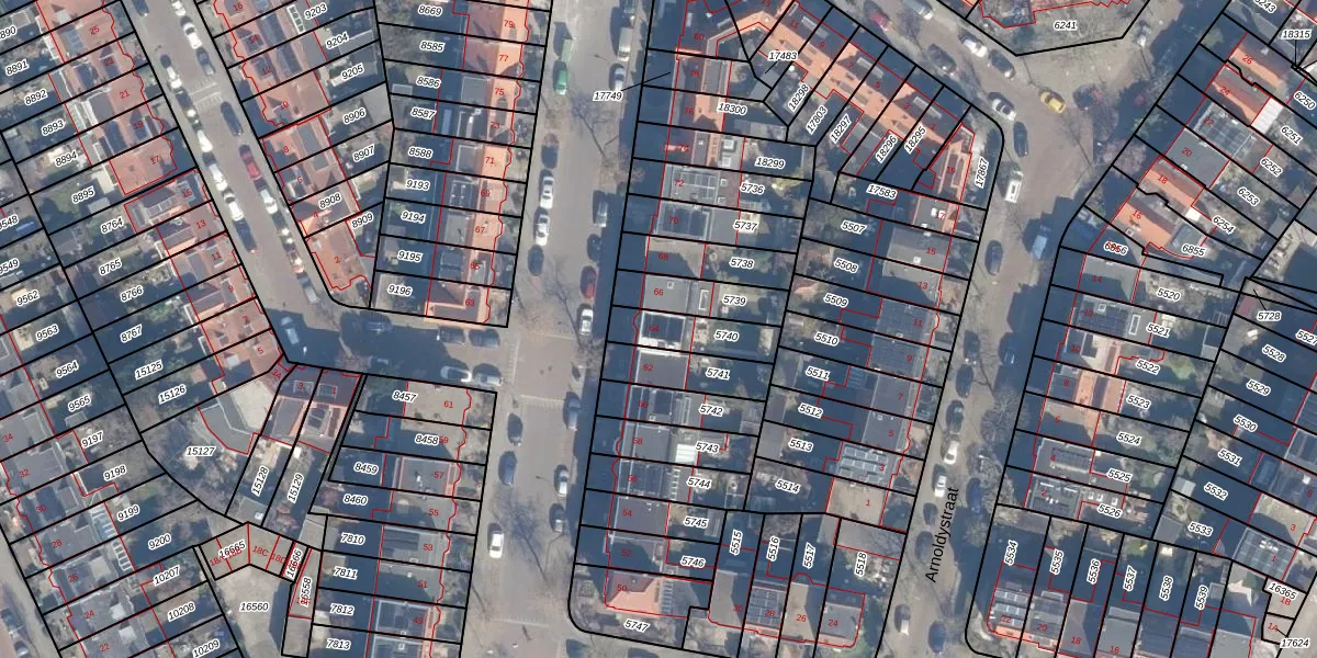 Gebruik de zoekbalk of klik op een perceel voor informatie over de adressen binnen dit perceel.