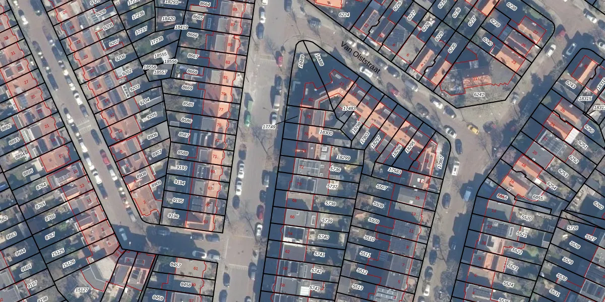 Gebruik de zoekbalk of klik op een perceel voor informatie over de adressen binnen dit perceel.