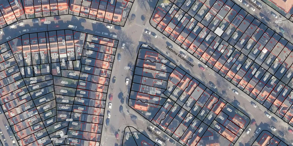Gebruik de zoekbalk of klik op een perceel voor informatie over de adressen binnen dit perceel.