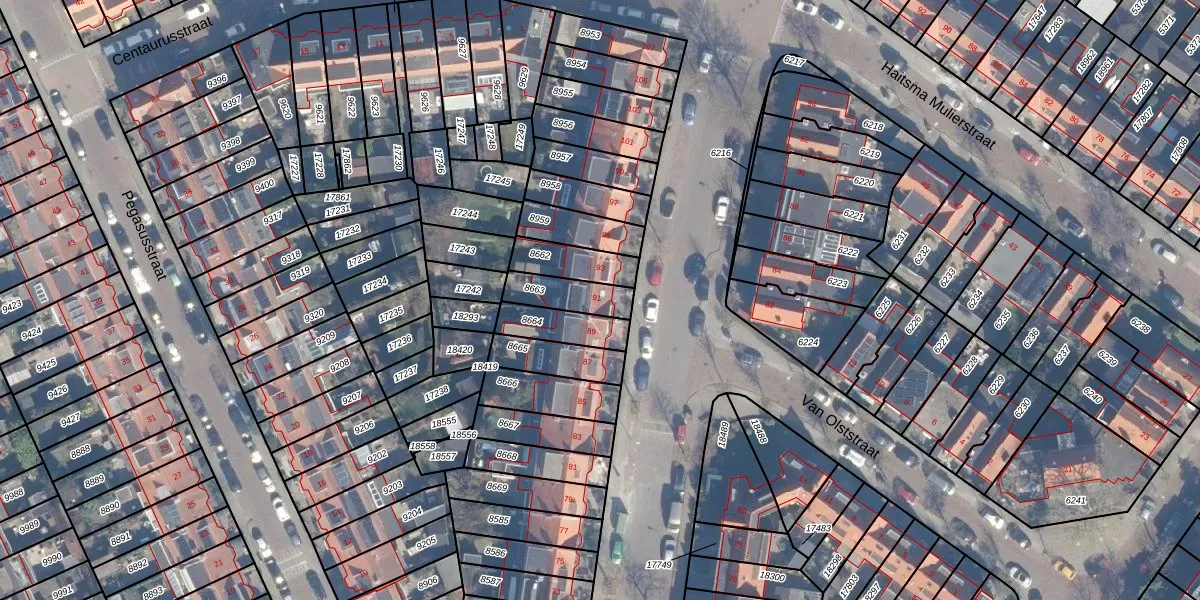 Gebruik de zoekbalk of klik op een perceel voor informatie over de adressen binnen dit perceel.