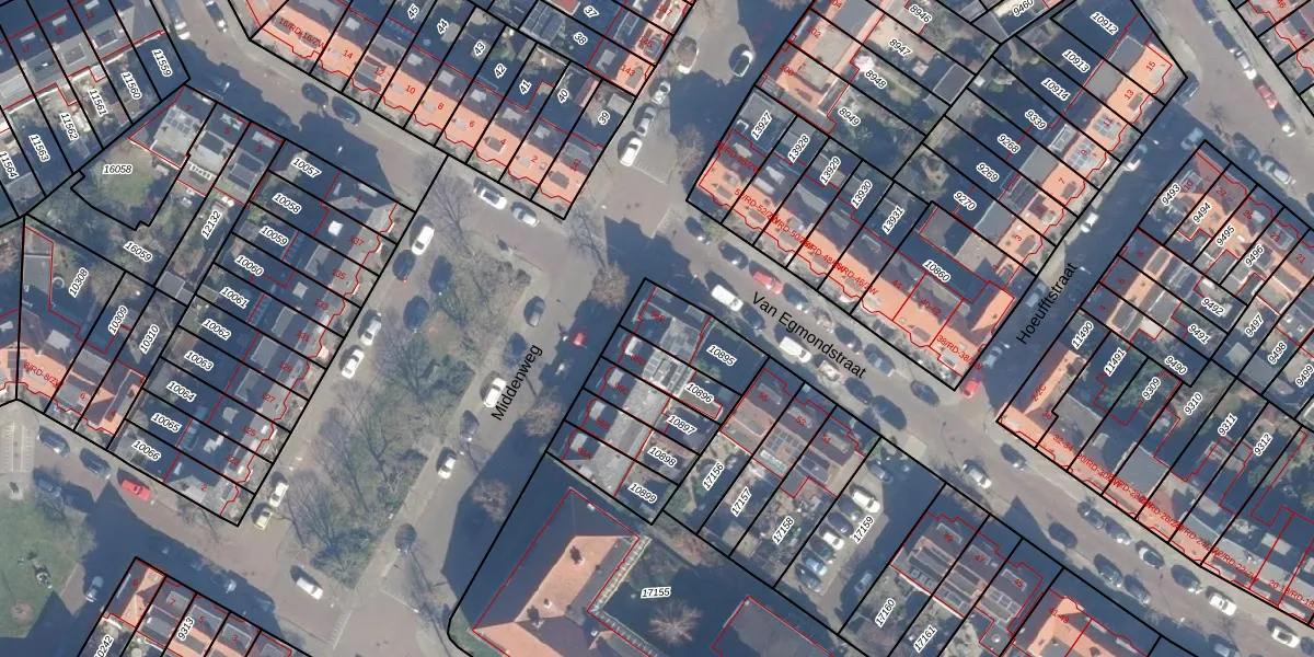 Gebruik de zoekbalk of klik op een perceel voor informatie over de adressen binnen dit perceel.