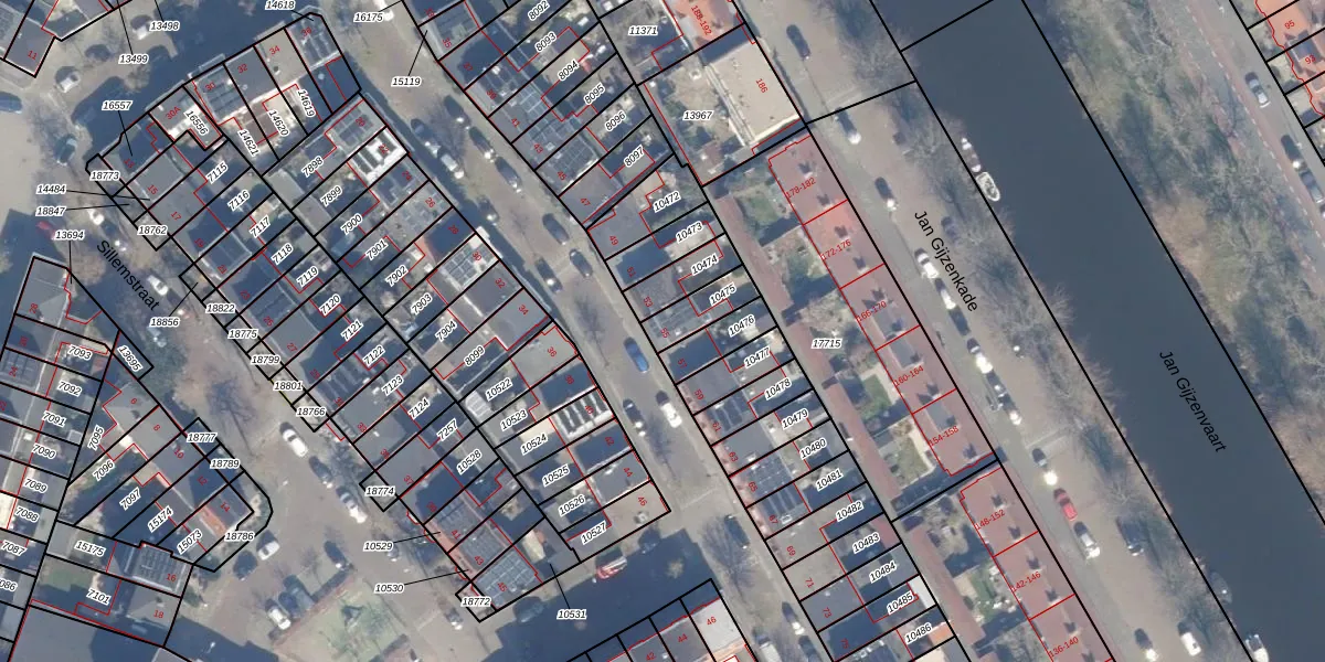 Gebruik de zoekbalk of klik op een perceel voor informatie over de adressen binnen dit perceel.