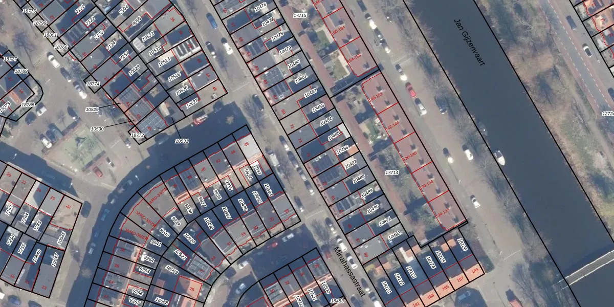 Gebruik de zoekbalk of klik op een perceel voor informatie over de adressen binnen dit perceel.