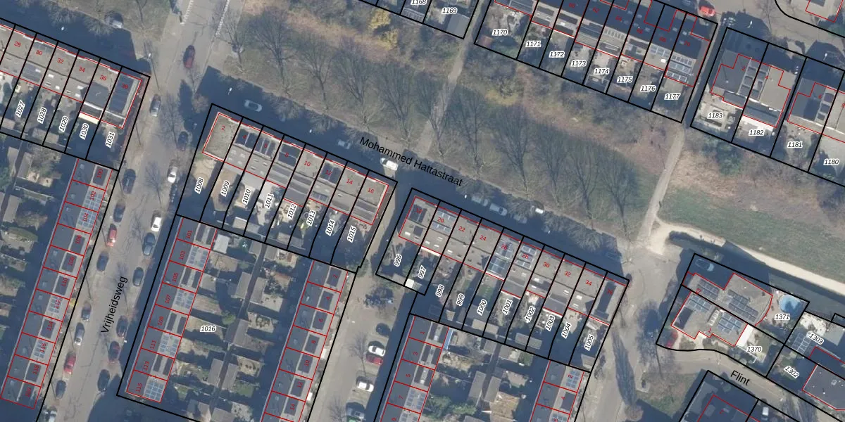 Gebruik de zoekbalk of klik op een perceel voor informatie over de adressen binnen dit perceel.