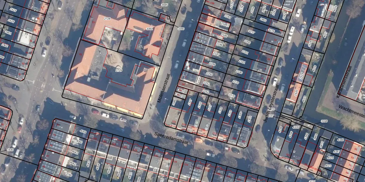 Molenaerstraat 1-B is gelegen op kadastraal perceel HLM01G3501. Deze kadastrale aanduiding is uniek en wordt gebruikt door het Kadaster om eigendomsrechten en andere zakelijke rechten vast te leggen. Het perceel maakt onderdeel uit van de kadastrale gemeente Haarlem.