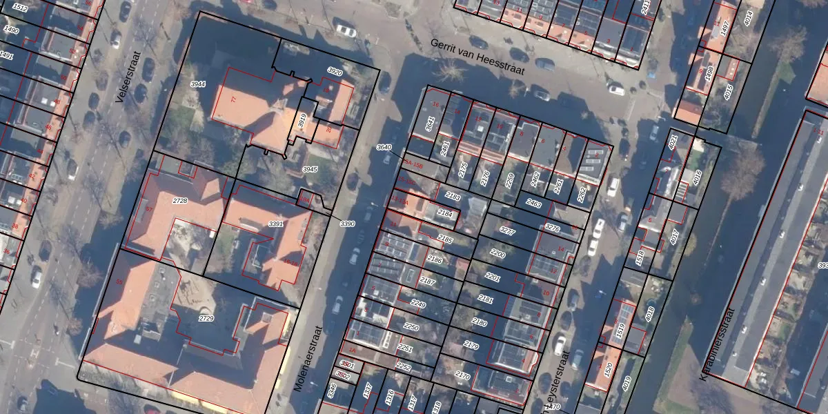 Molenaerstraat 13-A is gelegen op kadastraal perceel HLM01G2184. Deze kadastrale aanduiding is uniek en wordt gebruikt door het Kadaster om eigendomsrechten en andere zakelijke rechten vast te leggen. Het perceel maakt onderdeel uit van de kadastrale gemeente Haarlem.
