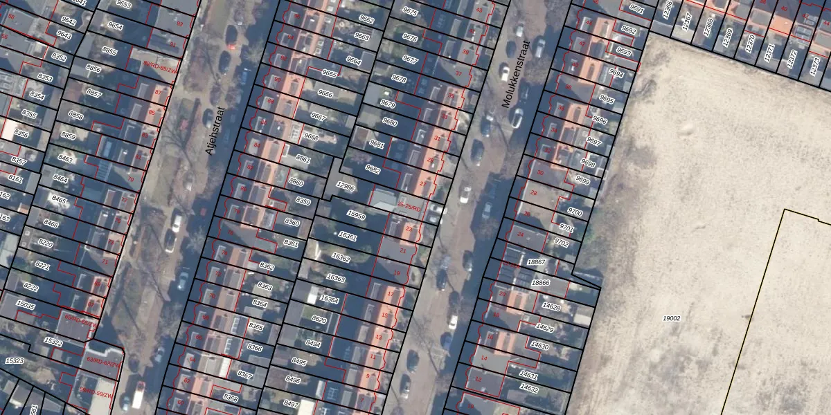 Het perceel waarop Molukkenstraat 25 staat heeft een oppervlakte van 181 m². Dit is een middelgroot perceel. De perceeloppervlakte wordt geregistreerd door het Kadaster. Gedetailleerde informatie over de maten van dit perceel kunt u vinden in het rapport Kadastrale kaart met maatvoering van Molukkenstraat 25.