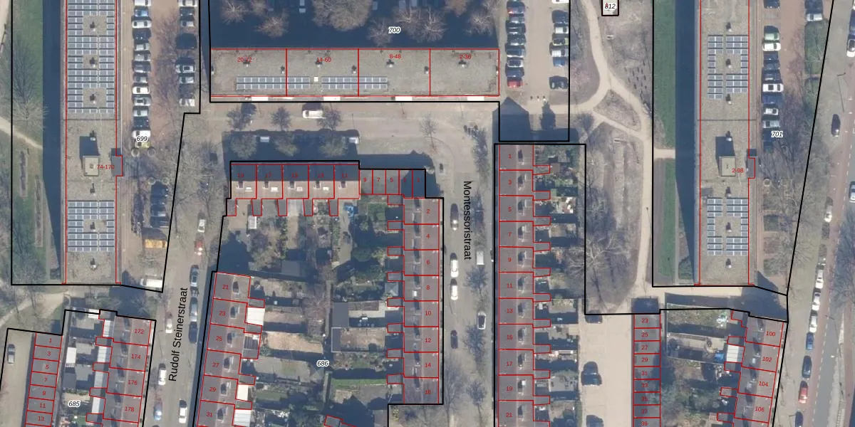 Montessoristraat 2 is gelegen op kadastraal perceel HLM02X686. Deze kadastrale aanduiding is uniek en wordt gebruikt door het Kadaster om eigendomsrechten en andere zakelijke rechten vast te leggen. Het perceel maakt onderdeel uit van de kadastrale gemeente Haarlem.