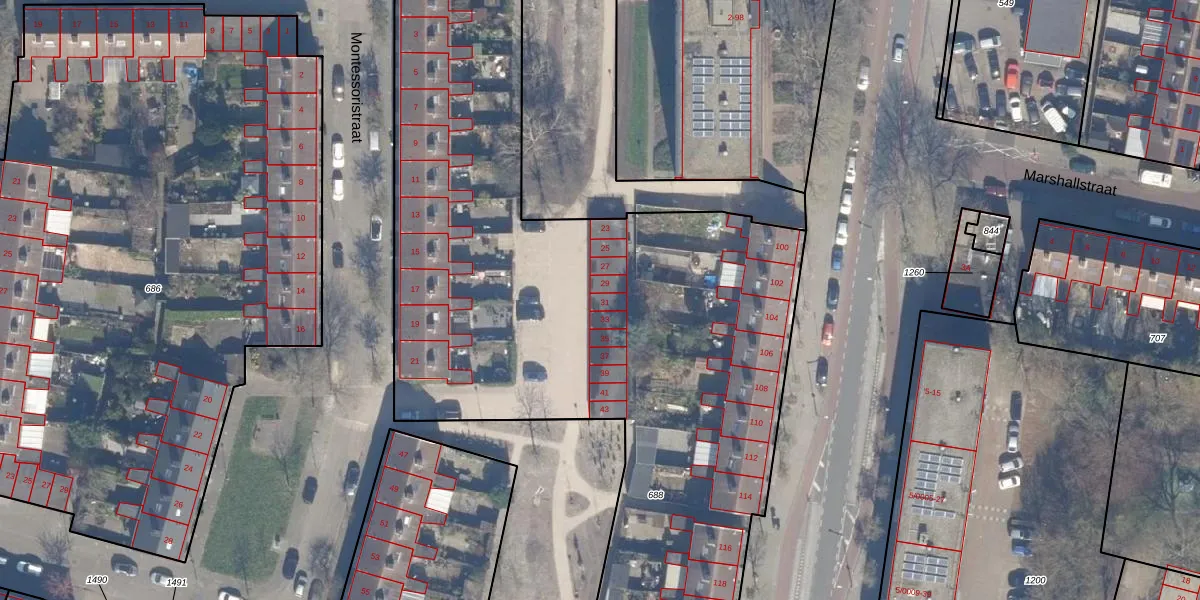 Het perceel waarop Montessoristraat 31 staat heeft een oppervlakte van 8075 m². Dit is een zeer groot perceel. De perceeloppervlakte wordt geregistreerd door het Kadaster. Gedetailleerde informatie over de maten van dit perceel kunt u vinden in het rapport Kadastrale kaart met maatvoering van Montessoristraat 31.