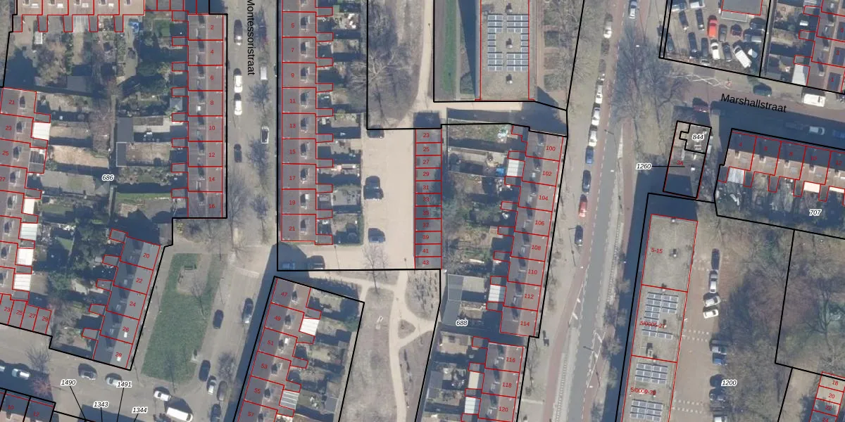 Het perceel waarop Montessoristraat 35 staat heeft een oppervlakte van 8075 m². Dit is een zeer groot perceel. De perceeloppervlakte wordt geregistreerd door het Kadaster. Gedetailleerde informatie over de maten van dit perceel kunt u vinden in het rapport Kadastrale kaart met maatvoering van Montessoristraat 35.