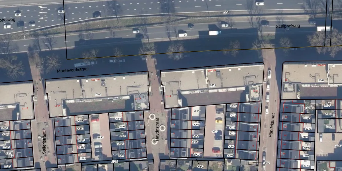 Monteverdistraat 252 is gelegen op kadastraal perceel HLM02Q2859. Deze kadastrale aanduiding is uniek en wordt gebruikt door het Kadaster om eigendomsrechten en andere zakelijke rechten vast te leggen. Het perceel maakt onderdeel uit van de kadastrale gemeente Haarlem.