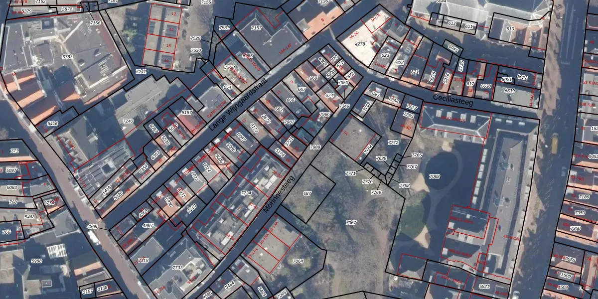 Het perceel waarop Morinnesteeg 16 staat heeft een oppervlakte van 40 m². Dit is een klein perceel. De perceeloppervlakte wordt geregistreerd door het Kadaster. Gedetailleerde informatie over de maten van dit perceel kunt u vinden in het rapport Kadastrale kaart met maatvoering van Morinnesteeg 16.