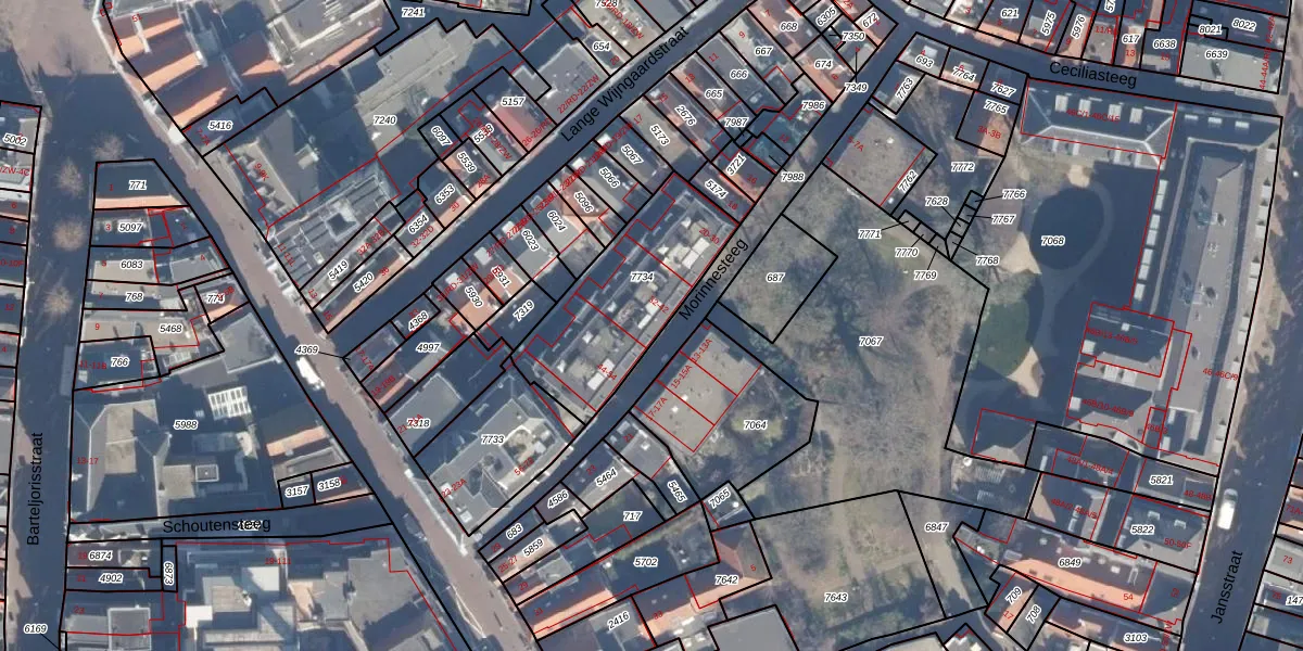 Het perceel waarop Morinnesteeg 38 staat heeft een oppervlakte van 565 m². Dit is een groot perceel. De perceeloppervlakte wordt geregistreerd door het Kadaster. Gedetailleerde informatie over de maten van dit perceel kunt u vinden in het rapport Kadastrale kaart met maatvoering van Morinnesteeg 38.