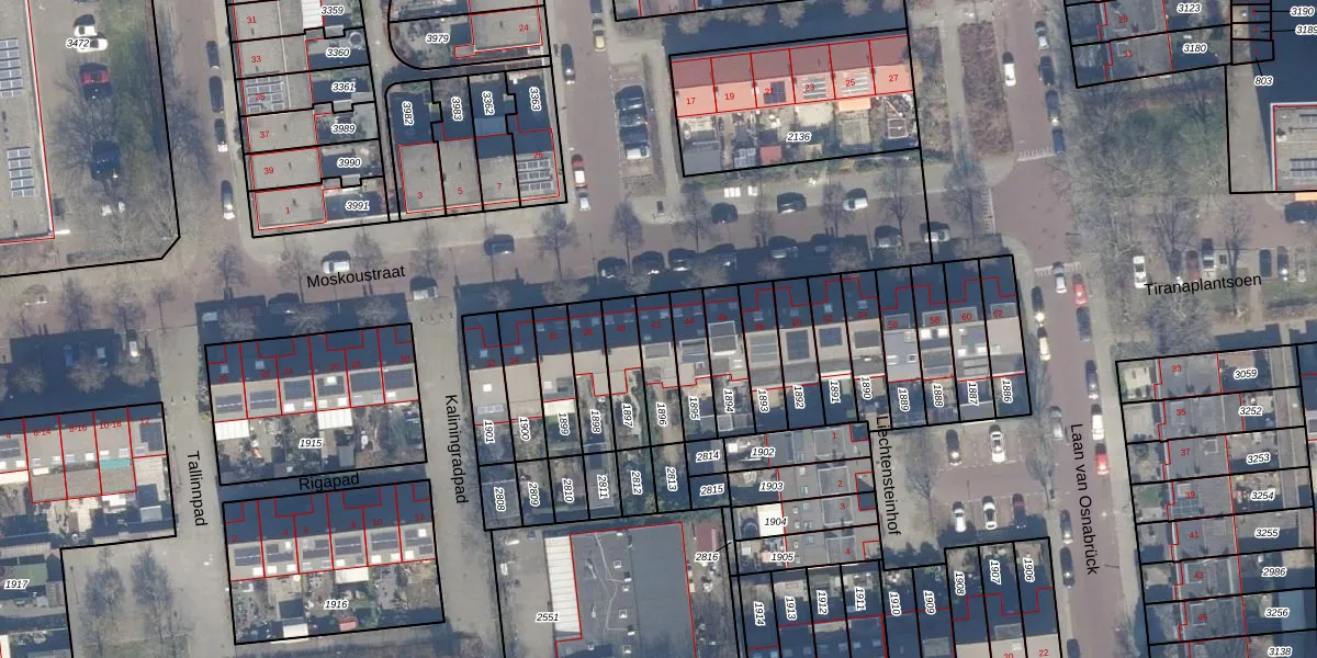 Het perceel waarop Moskoustraat 42 staat heeft een oppervlakte van 119 m². Dit is een middelgroot perceel. De perceeloppervlakte wordt geregistreerd door het Kadaster. Gedetailleerde informatie over de maten van dit perceel kunt u vinden in het rapport Kadastrale kaart met maatvoering van Moskoustraat 42.