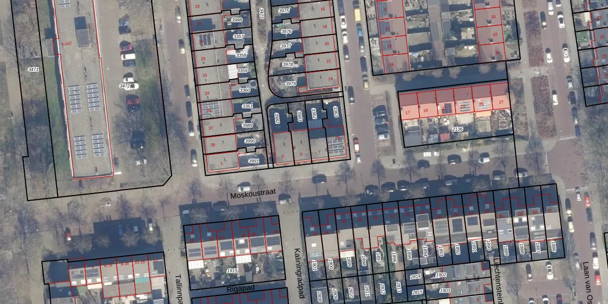 Gebruik de zoekbalk of klik op een perceel voor informatie over de adressen binnen dit perceel.