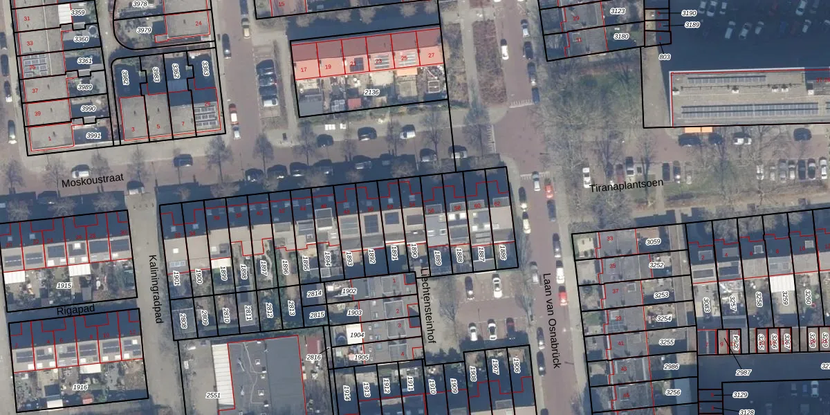 Het perceel waarop Moskoustraat 54 staat heeft een oppervlakte van 124 m². Dit is een middelgroot perceel. De perceeloppervlakte wordt geregistreerd door het Kadaster. Gedetailleerde informatie over de maten van dit perceel kunt u vinden in het rapport Kadastrale kaart met maatvoering van Moskoustraat 54.