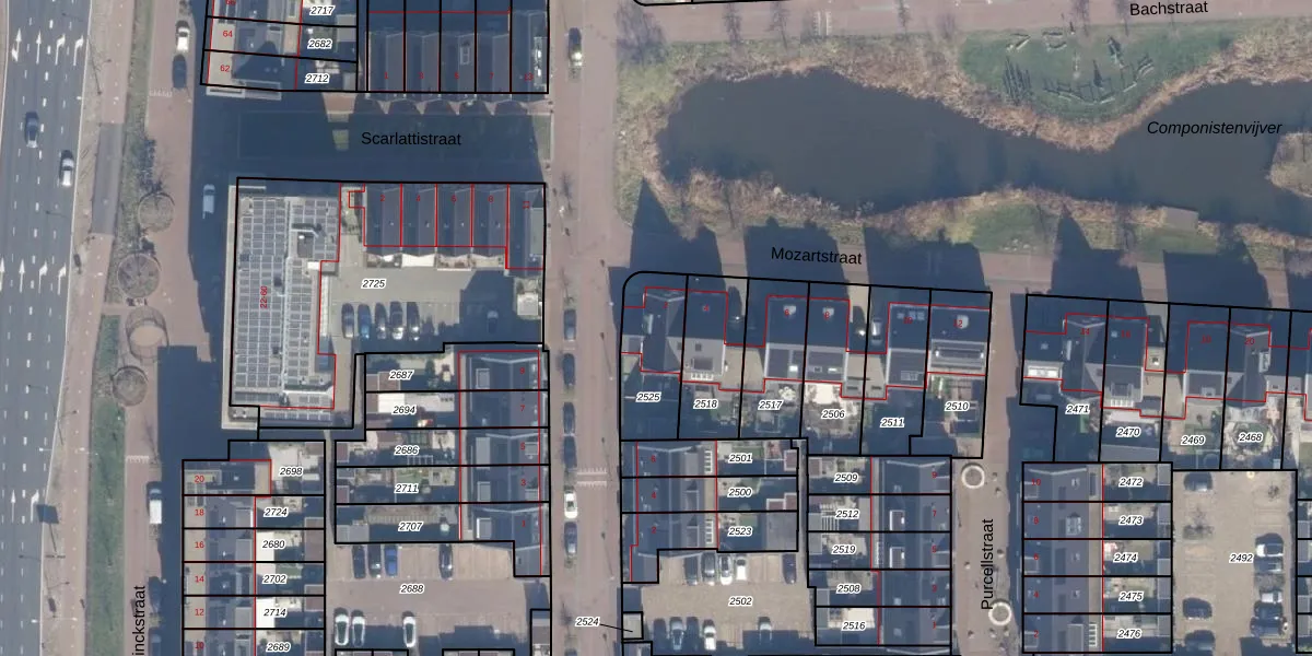 Het perceel waarop Mozartstraat 2 staat heeft een oppervlakte van 237 m². Dit is een middelgroot perceel. De perceeloppervlakte wordt geregistreerd door het Kadaster. Gedetailleerde informatie over de maten van dit perceel kunt u vinden in het rapport Kadastrale kaart met maatvoering van Mozartstraat 2.