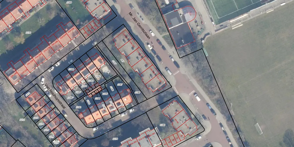 Het perceel waarop Mr. Jan Gerritszlaan 13-C staat heeft een oppervlakte van 955 m². Dit is een groot perceel. De perceeloppervlakte wordt geregistreerd door het Kadaster. Gedetailleerde informatie over de maten van dit perceel kunt u vinden in het rapport Kadastrale kaart met maatvoering van Mr. Jan Gerritszlaan 13-C.