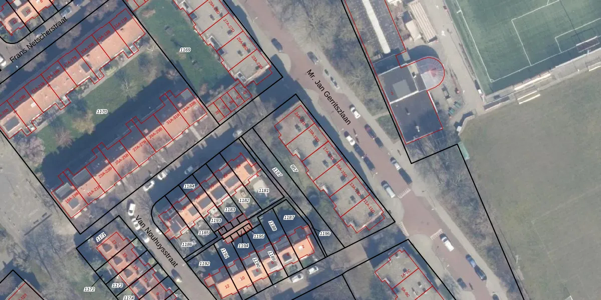 Het perceel waarop Mr. Jan Gerritszlaan 19-D staat heeft een oppervlakte van 955 m². Dit is een groot perceel. De perceeloppervlakte wordt geregistreerd door het Kadaster. Gedetailleerde informatie over de maten van dit perceel kunt u vinden in het rapport Kadastrale kaart met maatvoering van Mr. Jan Gerritszlaan 19-D.